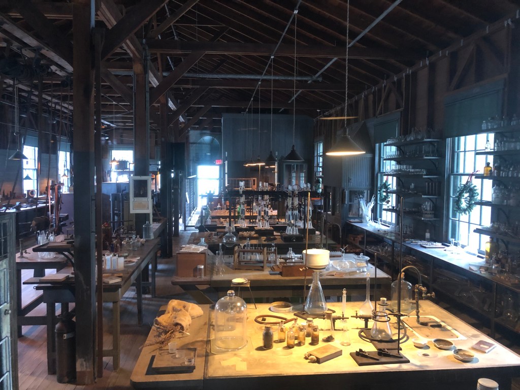 The museum exits out to a small outdoor area where the entrance to the Edison Botanical Research Laboratory is located. There are informational plaques inside the lab and office area describing how Edison used the lab to research botanical alternatives for making rubber during times of war. They have the lab set up just as if Edison and his crew were in conducting experiments that day.