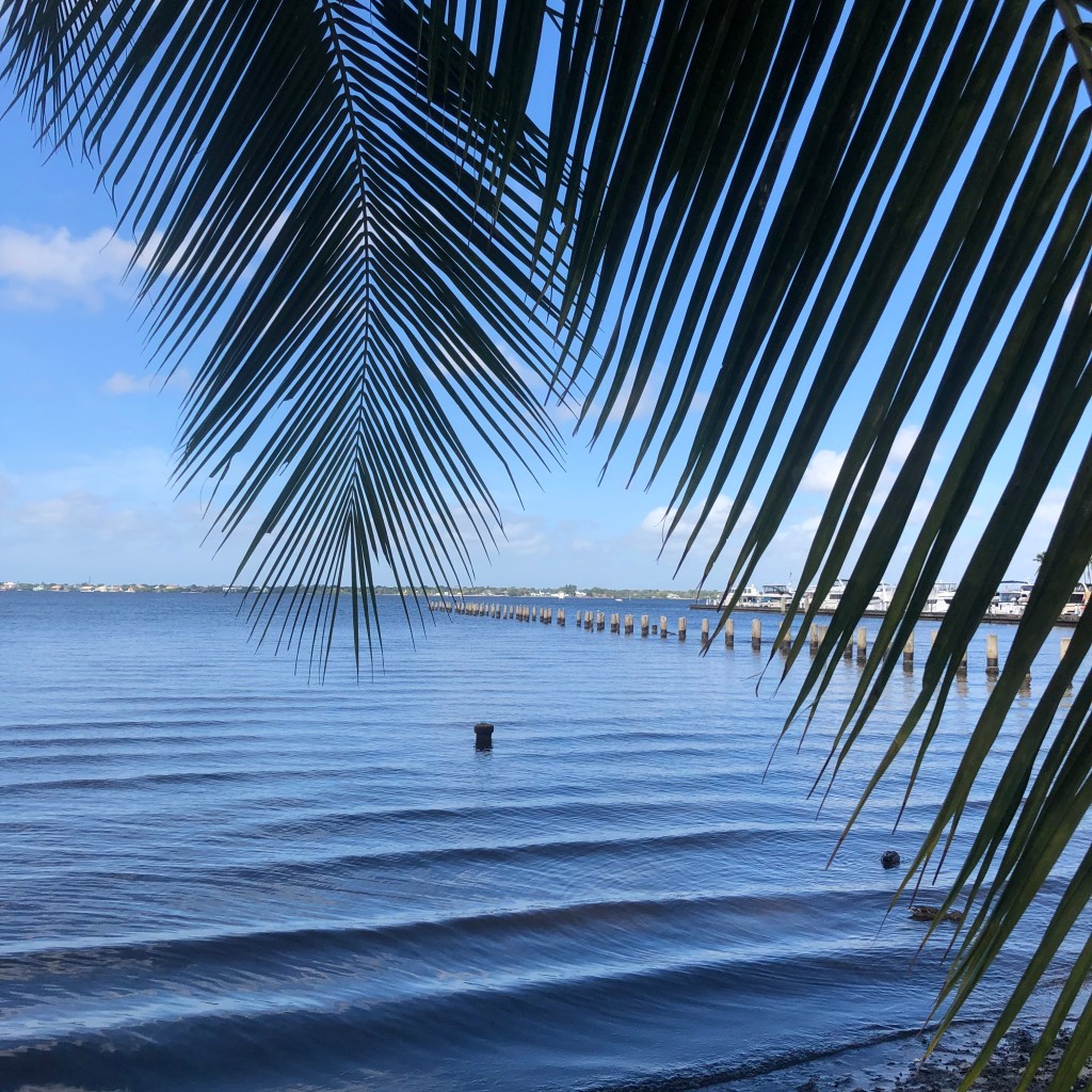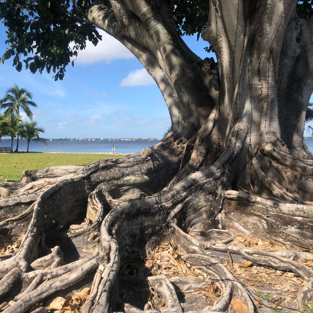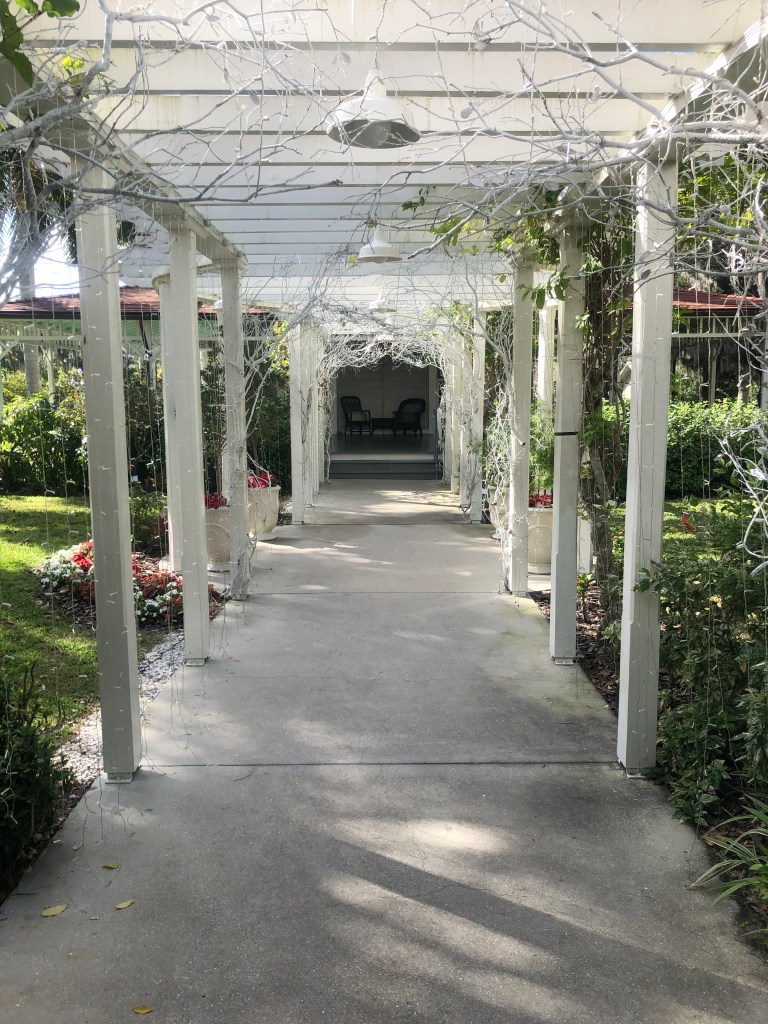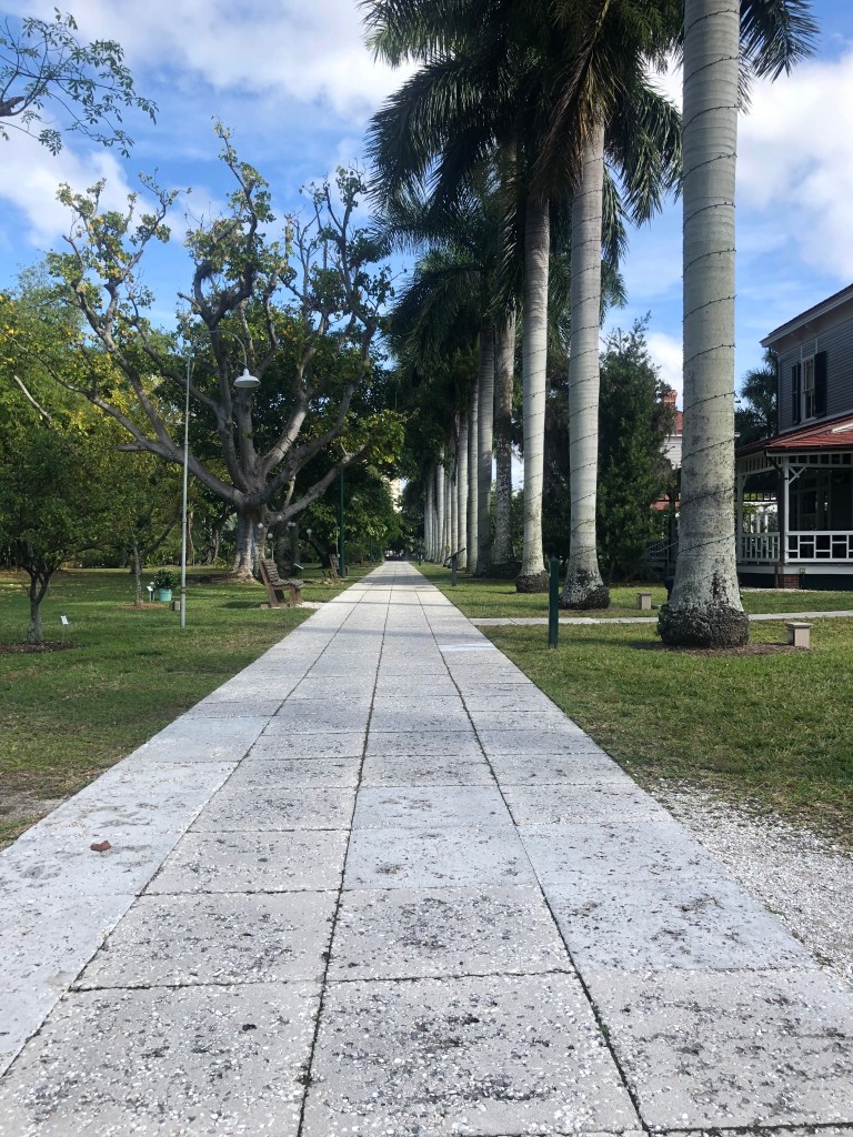 Next, I headed across the street to the Edison and Ford winter homes and gardens. When I first walked onto the estate my eye was drawn to the water where there once stood a pier. I walked down by it passing a fountain in the pathway that was under construction, but I could see it in all of it’s glory in a picture on the Edison Ford app. At the water, I enjoyed the peaceful sound of lapping water, while looking out at where a long pier once stood.